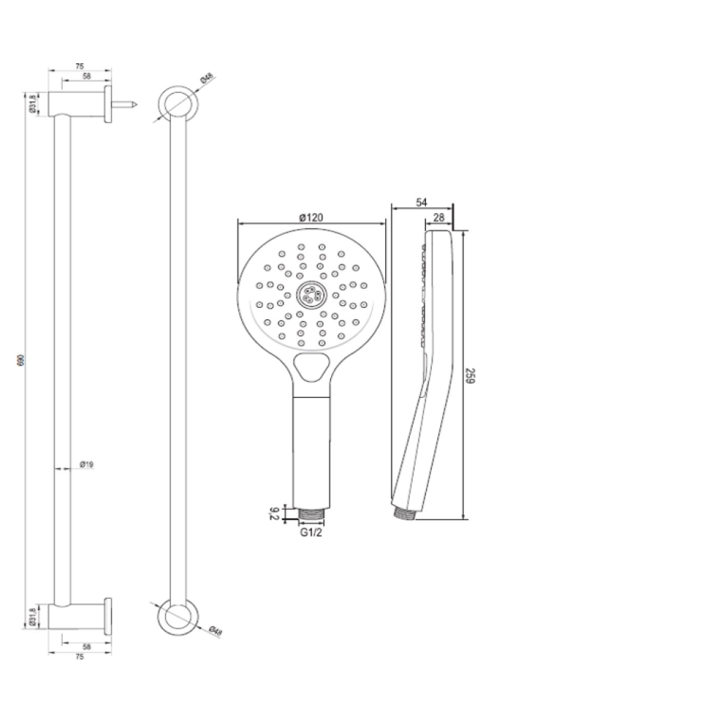 - Ronde Handdouche: De elegante ronde handdouche levert een comfortabele, volle straal water, perfect voor een verkwikkende start van de dag of een ontspannende afsluiting. De ergonomische vorm ligt prettig in de hand en de straal is ontworpen voor maximale bedekking en comfort.