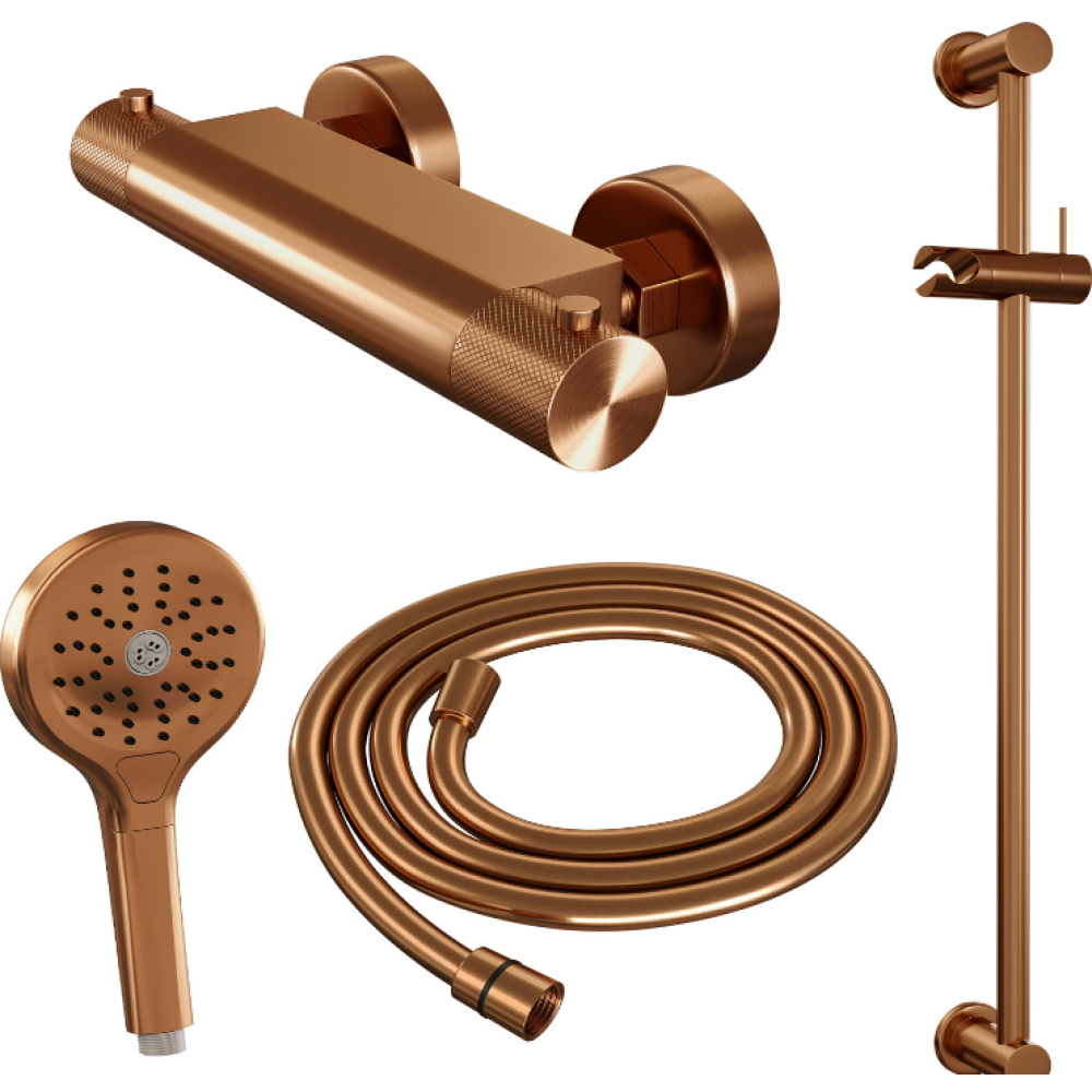 Douchekraanset Brauer Copper Carving Opbouw Met Glijstang En Ronde Handdouche Geborsteld Koper